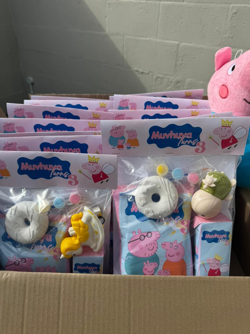 This custom Peppa Pig themed party packet is filled with tasty treats, making it the perfect party favor for little fans. Each packet includes: