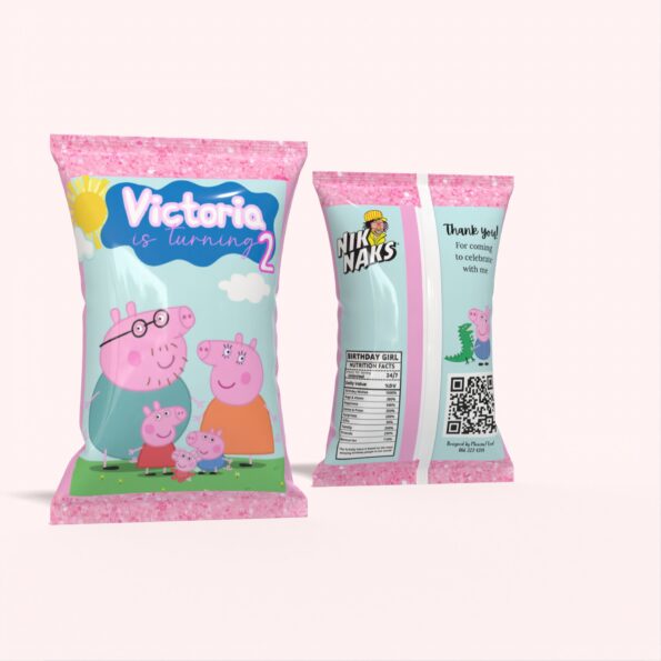 This custom Peppa Pig themed party packet is filled with tasty treats, making it the perfect party favor for little fans. Each packet includes: