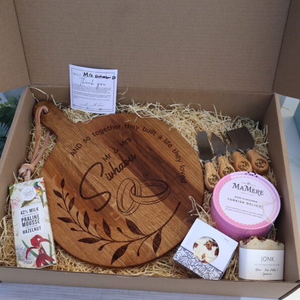 This Personalised Luxury Gift Hamper blends elegance, indulgence, and personalisation into one stunning package. Perfect for weddings, engagements, anniversaries, or housewarmings, it’s a heartfelt way to celebrate life’s most special moments.
