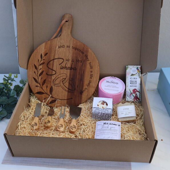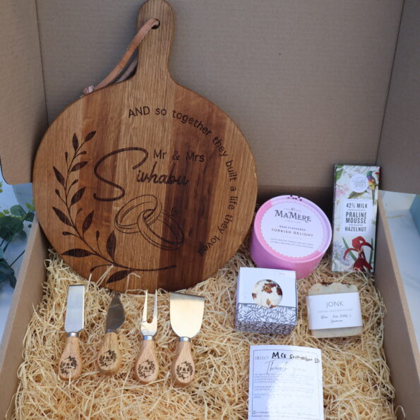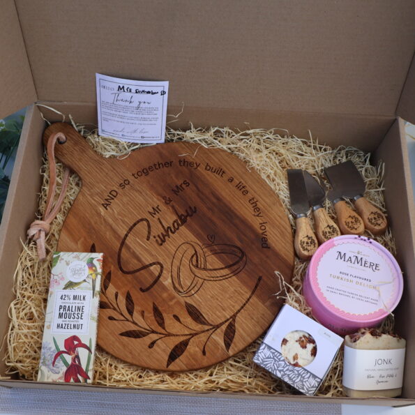 - Personalised Wooden Serving Board – Custom engraved with names, dates, or special messages.